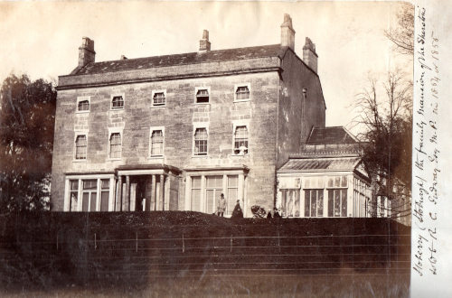"The House, which was built in the year 1796 by Peter Sherston, Esq., stands about a mile to the north of the city of Wells, which it overlooks, its site being upon an eminence. Here too it commands a fine prospect over the vale below, extending as far as the Dorsetshire hills. It has a park appended to it of moderate size, and tolerably well timbered."